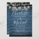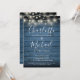 Blue Rustic Wood String Lights Script Engagement Invitation