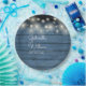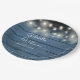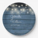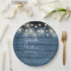 Blue Rustic Wood String Lights Script Wedding Paper Plate