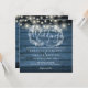 Blue Rustic Wood String Lights Square Wedding Invitation
