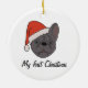 Celebrate your furry friend's very first holiday season with our adorable Blue Sable Frenchie Santa Hat Christmas Ornament. This delightful ornament features a charming illustration of a blue sable French Bulldog wearing a Santa hat, with the special addition of "My First Christmas" on one side. What makes it even more unique is the option to customise the other side with your pet's name and the year, creating a cherished keepsake to commemorate this special milestone.