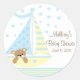 Cute Baby shower sticker featuring a Sweet Bear sailing in a blue & yellow sailboat. Perfect sticker for baby favours or invitation envelope seals! Matching invitations, postage stamps & thank you notes are available in our shop at www.celebrateitinvites.com. ©Cocoa Studio