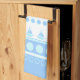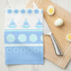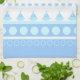 Kitchen towel with my design of light blue, white and turquoise sailboats, circles and stripes for a summer-time nautical look.