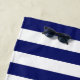 Stand out at the beach or pool with large bold stripes in navy blue and bright white