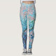 blue sakura cherry blossom floral painting yoga leggings