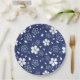 Traditional Japanese Sakura white cherry blossom flowers on navy blue.