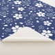 Traditional Japanese Sakura white cherry blossom flowers on navy blue.