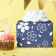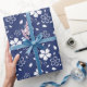 Traditional Japanese Sakura white cherry blossom flowers on blue.