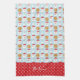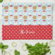 This adorable kitchen towel features a blue background with Santa, milk, and cookies and a red and white polka dot accent. Personalise with an name.