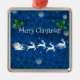 Blue Santa's Sleigh and Reindeer Ceramic Ornament