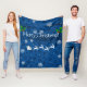 Blue Santa's Sleigh and Reindeer Fleece Blanket