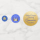 Beautiful personalised confetti for your Quinceañera or Sweet 16 party done in sapphire blue and gold. Graphics of a crown, glitter, gold high heels, star and a big sapphire gem decorate the individual pieces, with custom text, on one side of the largest disc. Personalise the text for your daughter's special day.