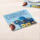 Graduate written in tall blue typography over your senior portrait photo makes a simple graduation party coaster for a football player on a sports team. Customise with your name and class of 2025 on this minimalist text overlay graduate decor.
