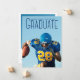 Graduate written in tall blue typography over your senior portrait photo makes a simple graduation announcement card for a football player on a sports team. Customise with your name and high school or university class of 2025 and add your personal details on the back of these minimalist text overlay graduate cards. Personalise with a 2nd photograph on the back.