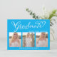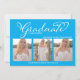 Celebrate your graduate with this elegant photo collage graduation announcement featuring stylish script typography and a modern blue background. Personalize with your graduate’s name, class year, and school information. The front showcases multiple senior portraits while the back can include graduation party details, open house information, or a personal message to family and friends.