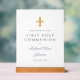 Blue Script Religious Boy First Communion Welcome Acrylic Sign.