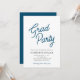 This graduation party invitation features a simple design accented with dark blue script text that reads "Grad Party". Personalised with all your graduation celebration party details.