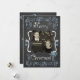 A chalkboard look background with beautiful scrolls and stars of blue and white text that reads "Merry Christmas" on front and "May all your days be merry & bright" on back. This beautiful customised holiday Christmas photo card has several star ornaments, and a bird in a nest design and areas you can easily add your names, the current year, and photo!