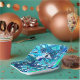 Birthday or baby shower paper plates. Blue and green ocean art with bubbles and modern abstract fluid art vibe.
