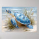 Blue Sea Turtle Coastal Beach Art Print | Poster