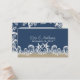 Our "Sea Garden" Starfish and seashell design in navy blue with the natural rustic look of burlap wedding seating place card in tangerine orange. Printed design.