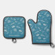 Blue Seashell pattern Oven Mitt & Pot Holder Set