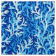 Fabric in a pattern of stylised, seaweed-inspired fronds in shades of icy blue, gracefully intertwining against a rich cobalt background, for a dynamic, marine-themed design