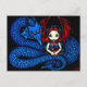 Blue Serpent - a striking bright blue scaled dragon and his fairy friend. My own original acrylic painting.