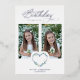 Blue Shades Birthday Real Silver 2 Photos Floral Heart Metallic Foil Invitation Card with Envelope.