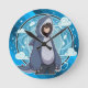 Illustration of a boy in a shark hoodie with a serene blue circular background.