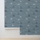 Nautical wallpaper for nurseries and kids rooms featuring a shark fin / whale fin / dolphin fin popping out from the waves. A simple color palette with a few shades of blue are the features in this monochromatic sea life inspired wallpaper for kids.