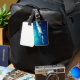 I was happy with the acrylic tag but it came with a thin leather strap to attach the tag to luggage (like a cat collar). I replaced the strap with a metal ring off of a key ring as the leather strap would come undone or break easily as luggage is sometimes handled without much care by airlines. Printing is great. Colours and positioning of the design I put on the tag were perfect. Very pleased.