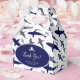 Add a touch of the ocean to the birthday party of your little boy with this custom blue and white shark pattern thank you favour box. Favour box has cute sharks swimming in the sea and your little one's name, the event date, and the text Thank You.