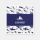 Add a touch of the ocean to the birthday party of your little boy with this custom blue and white shark pattern paper napkin. Each napkin has cute sharks swimming in the sea and your little one's first name.