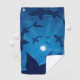 This Golf Towel features undersea upshot illustration of sharks circling around white moon shimmering through the water. The moon rays penetrate the ocean depth. Design is done in the shades of blue. For undersea world lovers.