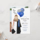 Blue silver She believed she could, so she did graduation invitation. Features blonde woman portrait graduate with blue silver glitter balloons, graduation cap and gown for the Class of 2024. Perfect grad party invite for high school grads, university grads, and graduate school grads.