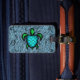 Digital painting of a sea turtle with a blue octagonal patterned shell. Sea turtle art from wingedturtle.com.
