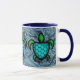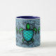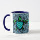 Digital painting of a sea turtle with a blue octagonal patterned shell. Sea turtle art from wingedturtle.com.