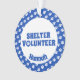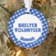 This ornament displays a blue border with white paw prints. The text says "SHELTER VOLUNTEER." The O in volunteer is replaced with a cute paw print.