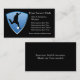 A silhouetted soccer player in black is centred on a blue shield framed with white on the bottom. The player is in the motion of kicking a ball. The right side holds your easily customised business text in light grey. The images and text are placed on a dramatic black background. The back of the card is also black, with an extra information field if you need it. Perfect for any business that is centred around soccer or athletics, or just for fun! *Clip art used in this design is copyrighted by Encore Software, Inc., which permits use to its licensors. All rights reserved.