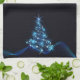 Blue Shine of Stars on Christmas Tree Dark Tea Towel
