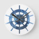 Blue Ship Helm Rust Metal Watch Round Clock