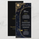 Elevate your reception under the stars with this Blue shooting star Celestial sun and moon wedding Menu. Designed against a romantic midnight blue sky inspired by a magical starry night, this Elegant menu features radiant sun accents, a glowing crescent moon, and a delicate constellation pattern across a dreamy cosmic backdrop. A graceful shooting star sweeps through the design, highlighted by a soft gazing halo glow that adds depth and mystical charm. Perfect for couples planning a celestial celebration, this menu beautifully complements your décor while guiding guests through your dining experience beneath a sparkling midnight blue sky.