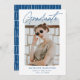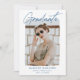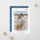 Trendy graduation announcement featuring the graduate's photo framed by a white rough edge border. "Graduate" is displayed in a blue signature script with the graduate's name, school name, and graduation year shown below. The modern graduation announcement reverses to display a unique blue and white stamped line pattern. This photo graduation announcement card is perfect for both high school and college graduations.