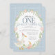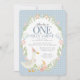 Blue Silly Goose Floral Gingham First Birthday Invitation