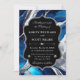 Blue Silver Agate Marble Glitter Wedding Invitation
