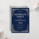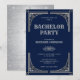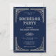 Invite your guests with this vintage Great Gatsby theme bachelor party invitation featuring silver decorative border with elegant typography against a blue background. Simply add your event details on this easy-to-use template to make it a one-of-a-kind invitation. Flip the card over to reveal a beautiful silver stars pattern on the back of the card.