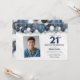 Blue Silver Black & White 21st Birthday Photo Invitation