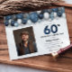 Blue Silver Black & White 60th Birthday Photo Invitation