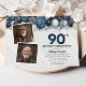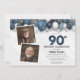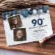 Blue Silver Black & White 90th Birthday 2 Photo Invitation