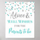 Advice and well wishes for the parents to be sign for baby shower in light blue and silver confetti pattern. Please note glitter effect is photographic effect only.